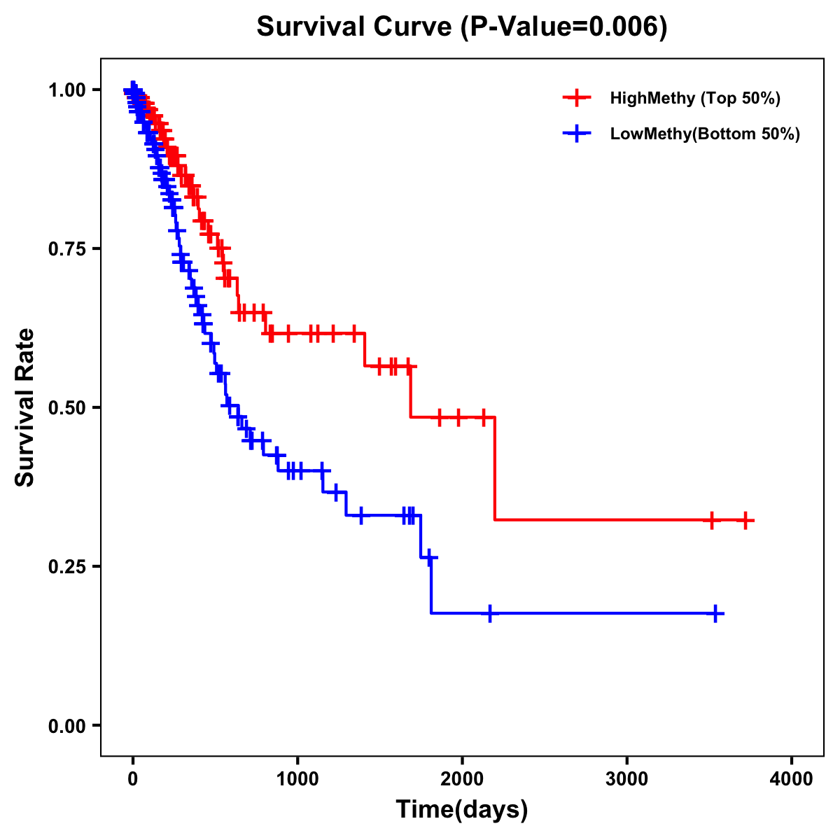 | Survival Curve of Stomach Cancer of Expression | Survival Curve of Stomach Cancer of Methylation | ||