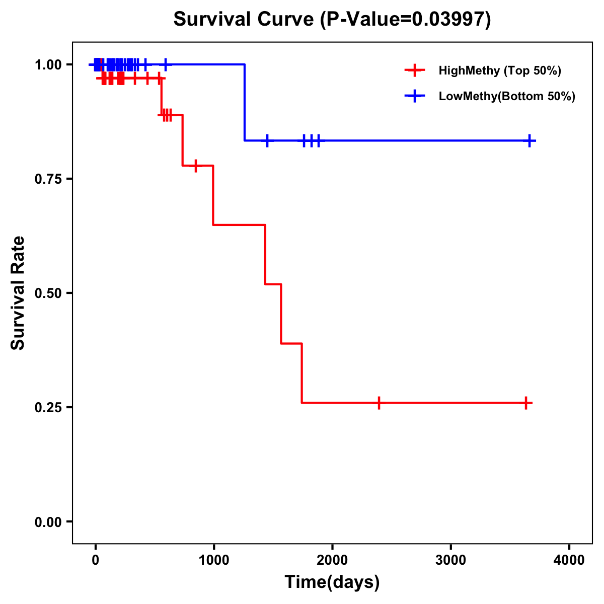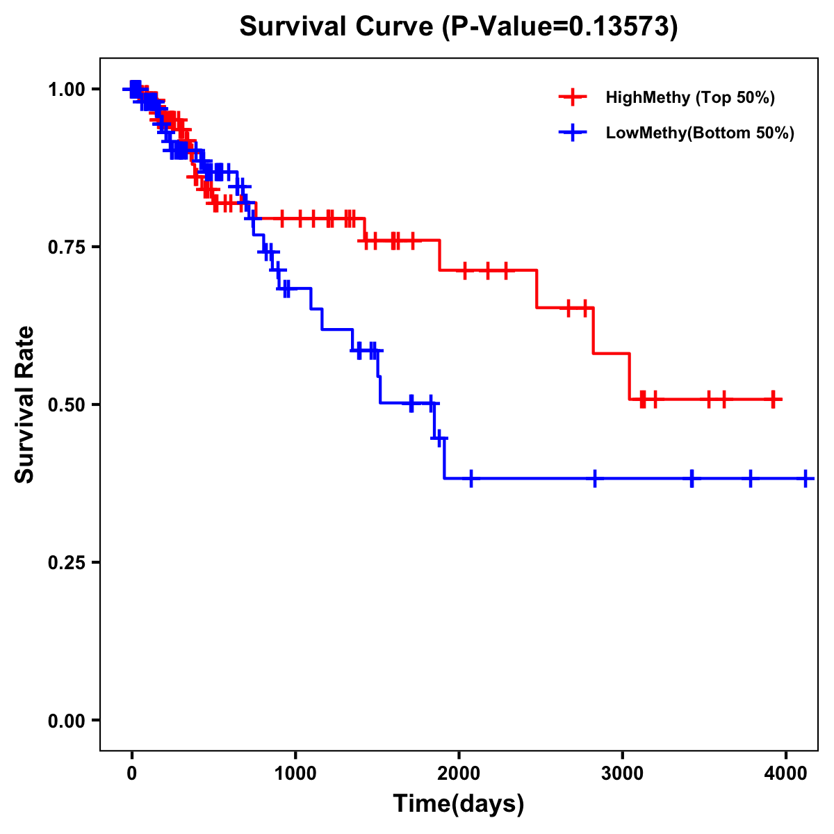 | Survival Curve of Colon Cancer on Methylation Level |