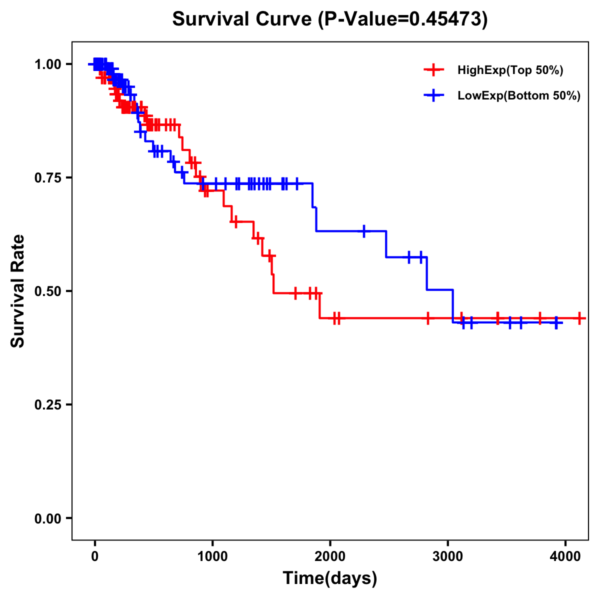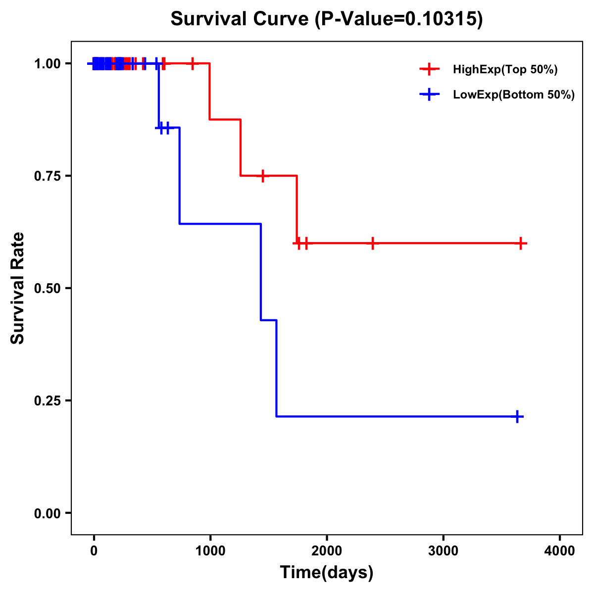 | Survival Curve of Colon Cancer on Expression Level |
