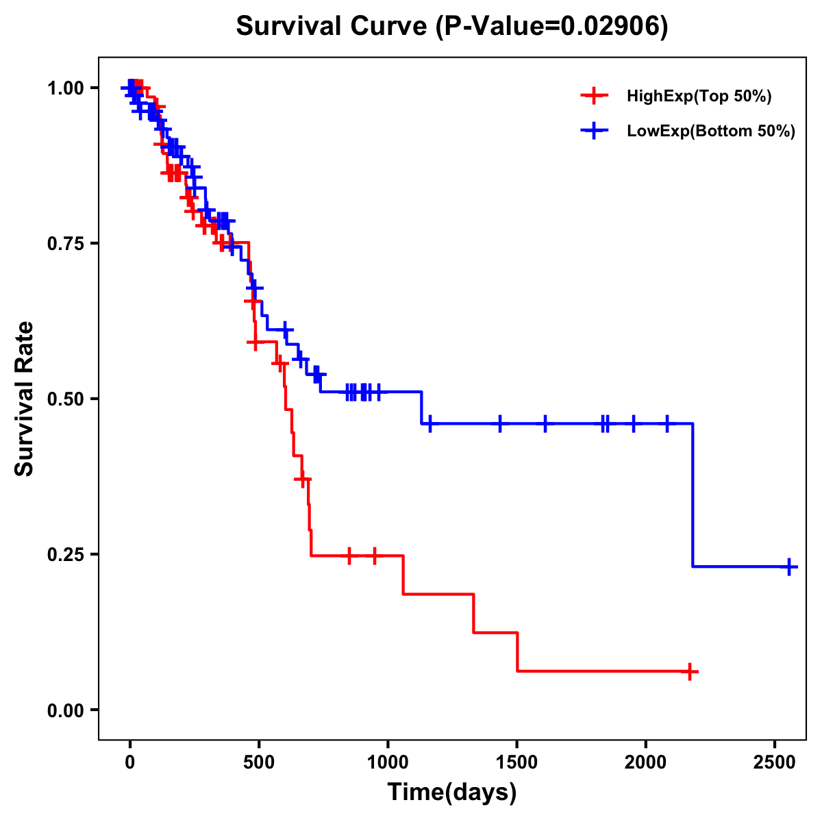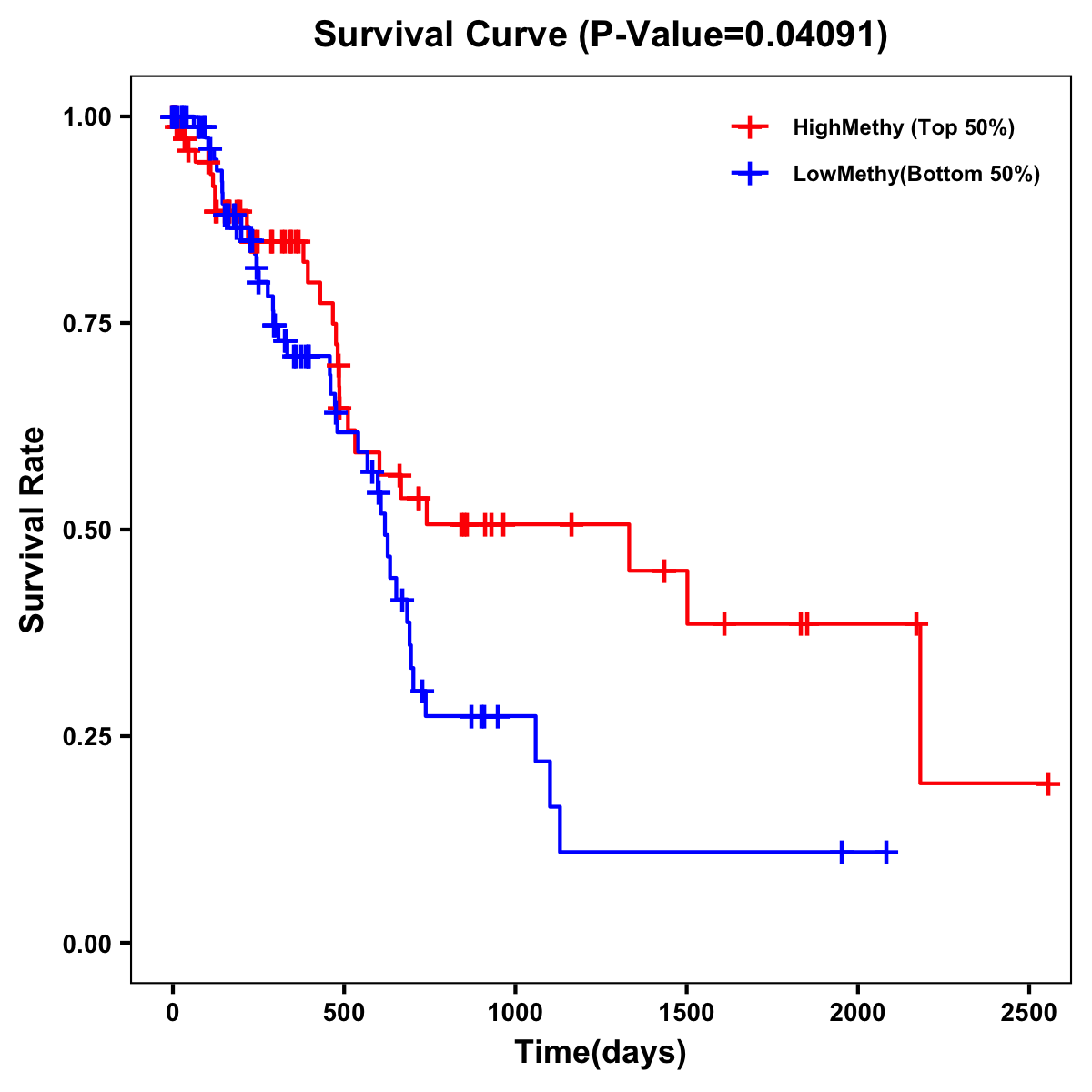 | Survival Curve of Pancreatic Cancer of Expression | Survival Curve of Pancreatic Cancer of Methylation | ||