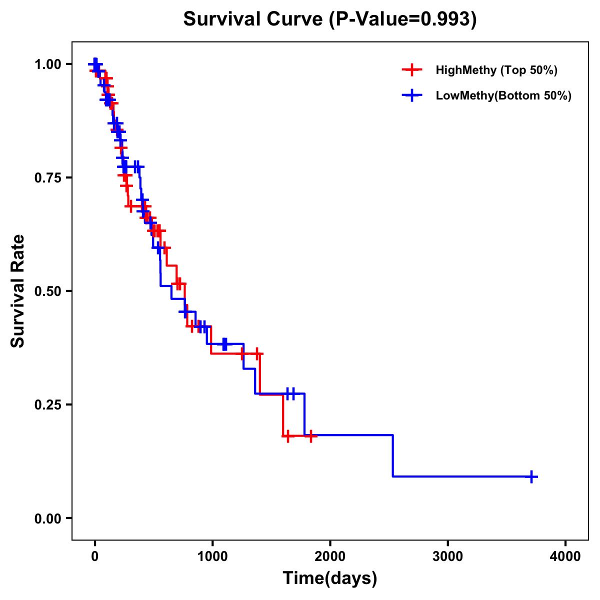 | Survival Curve of Esophagus Cancer of Expression | Survival Curve of Esophagus Cancer of Methylation | ||