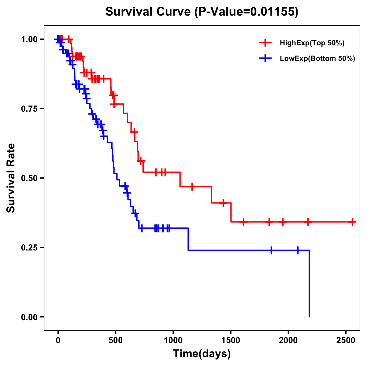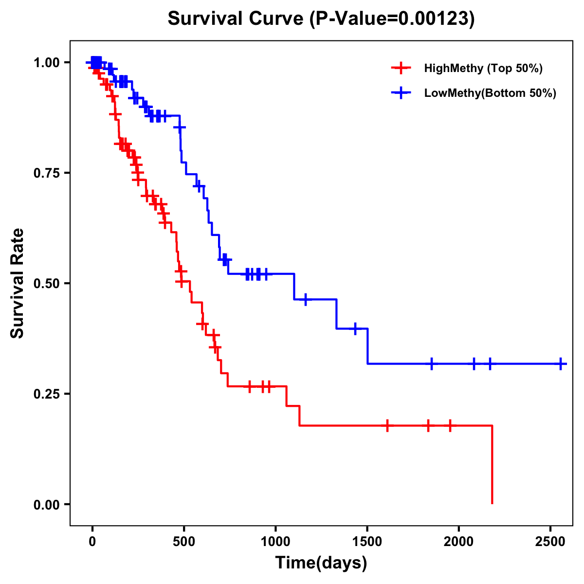 | Survival Curve of Pancreatic Cancer of Expression | Survival Curve of Pancreatic Cancer of Methylation | ||