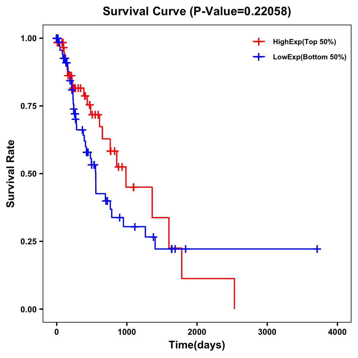 | Survival Curve of Esophagus Cancer of Expression | Survival Curve of Esophagus Cancer of Methylation | ||