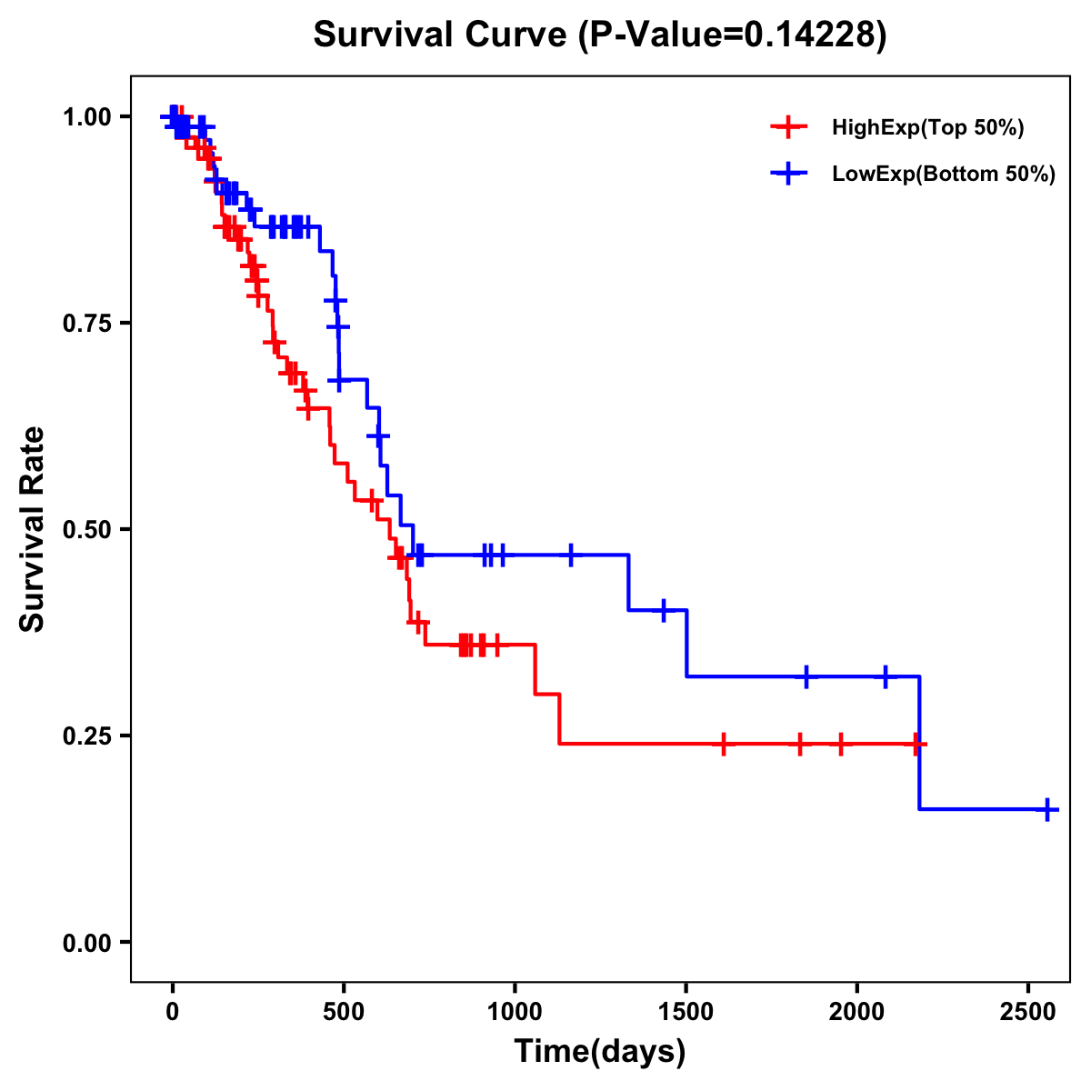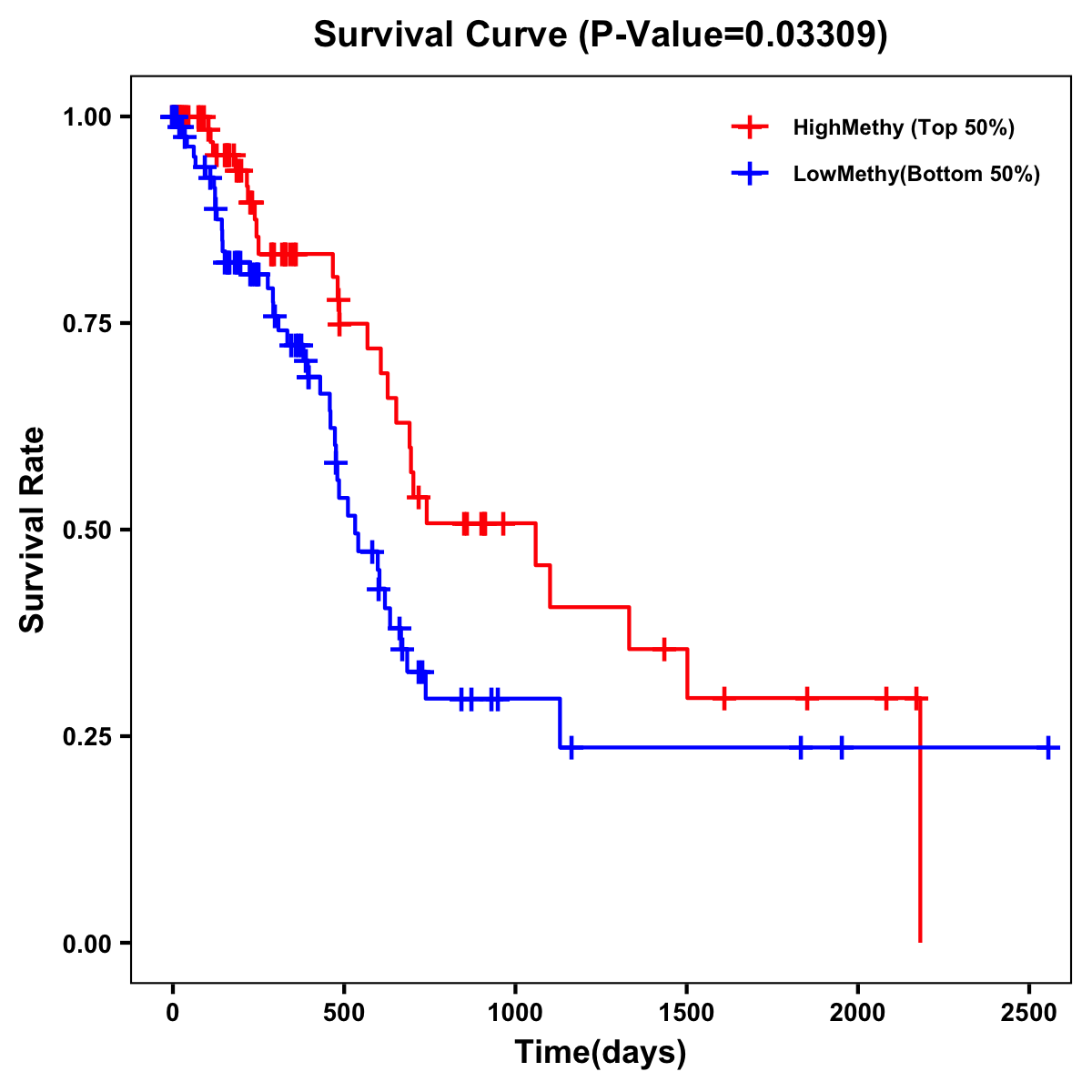 | Survival Curve of Pancreatic Cancer of Expression | Survival Curve of Pancreatic Cancer of Methylation | ||