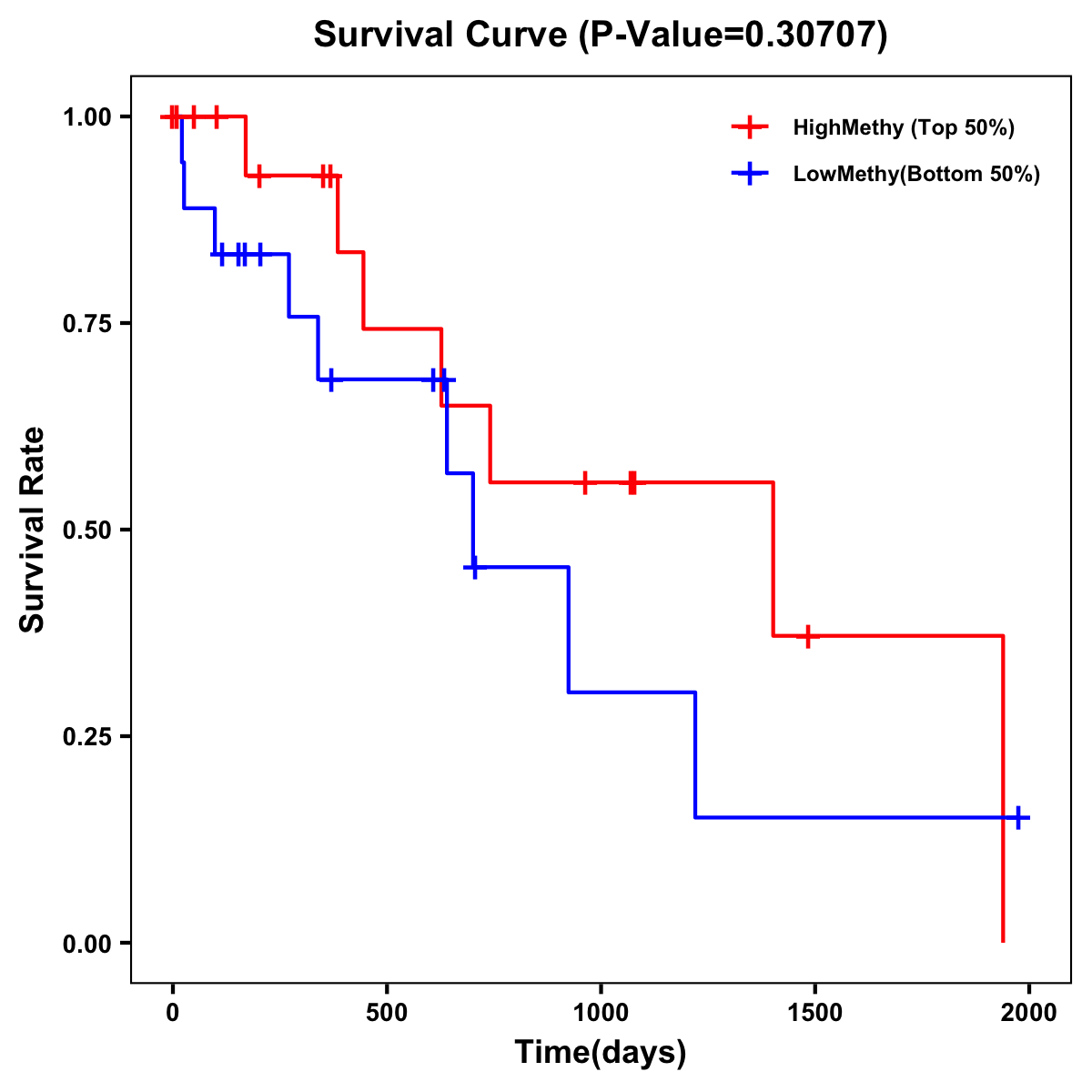 | Survival Curve of Biliary tract Cancer of Expression | Survival Curve of Biliary tract Cancer of Methylation | ||