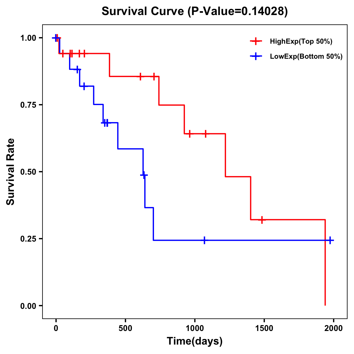 | Survival Curve of Biliary tract Cancer of Expression | Survival Curve of Biliary tract Cancer of Methylation | ||