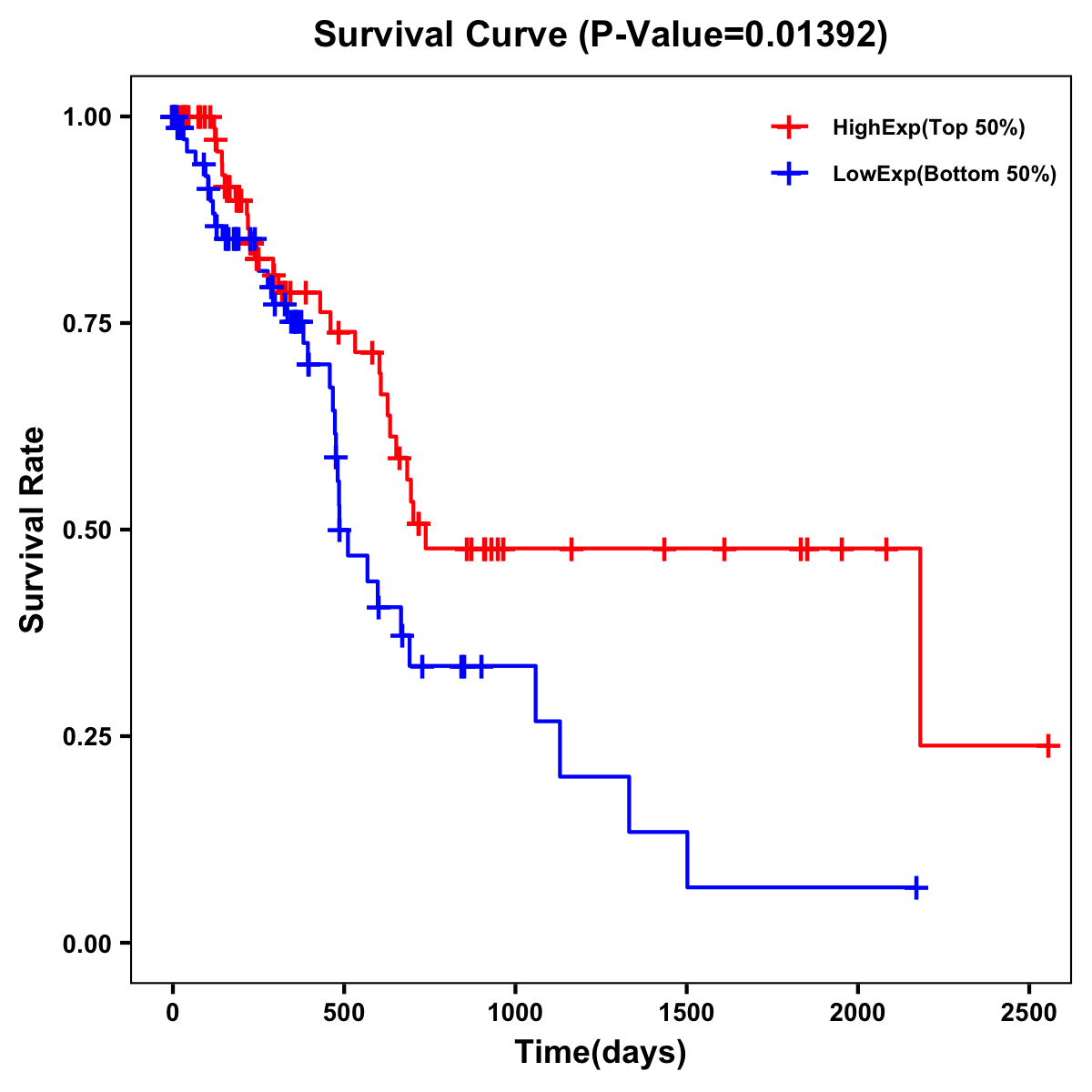 | Survival Curve of Pancreatic Cancer of Expression | Survival Curve of Pancreatic Cancer of Methylation | ||