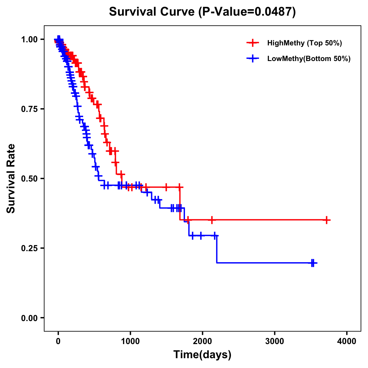 | Survival Curve of Stomach Cancer of Expression | Survival Curve of Stomach Cancer of Methylation | ||