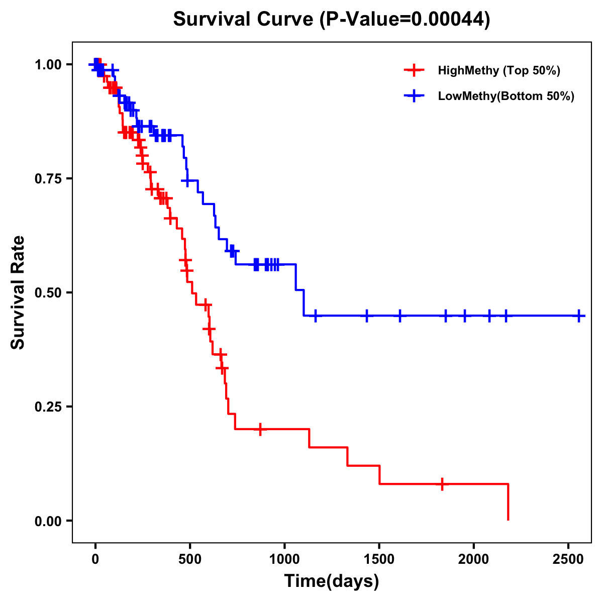 | Survival Curve of Pancreatic Cancer of Expression | Survival Curve of Pancreatic Cancer of Methylation | ||