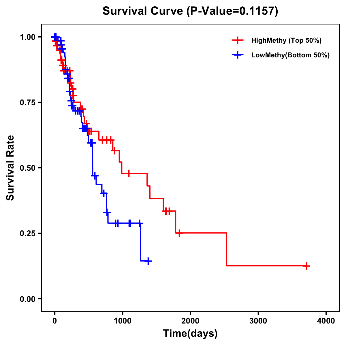 | Survival Curve of Esophagus Cancer of Expression | Survival Curve of Esophagus Cancer of Methylation | ||