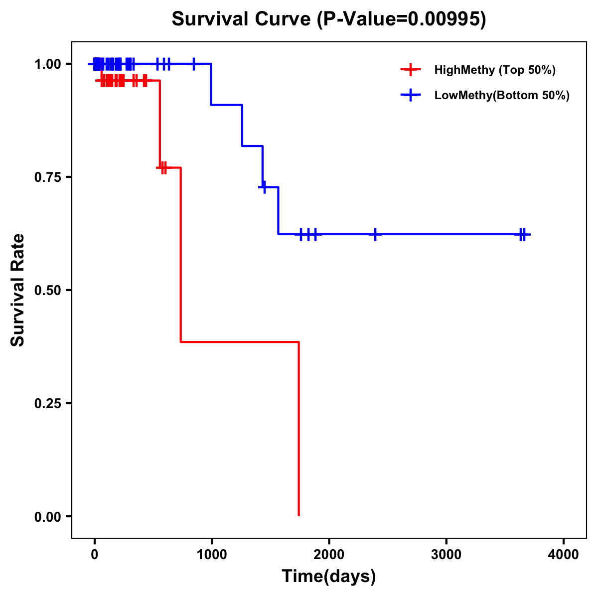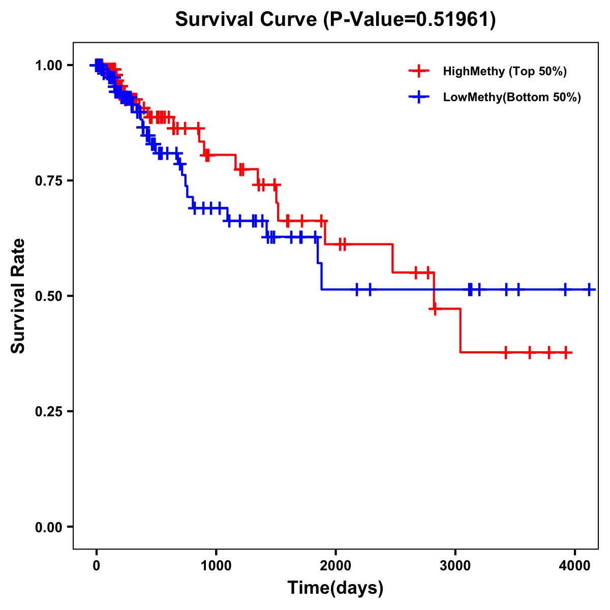 | Survival Curve of Colon Cancer on Methylation Level |