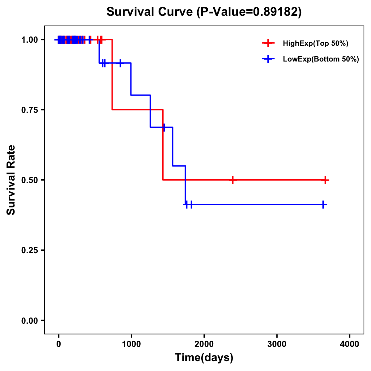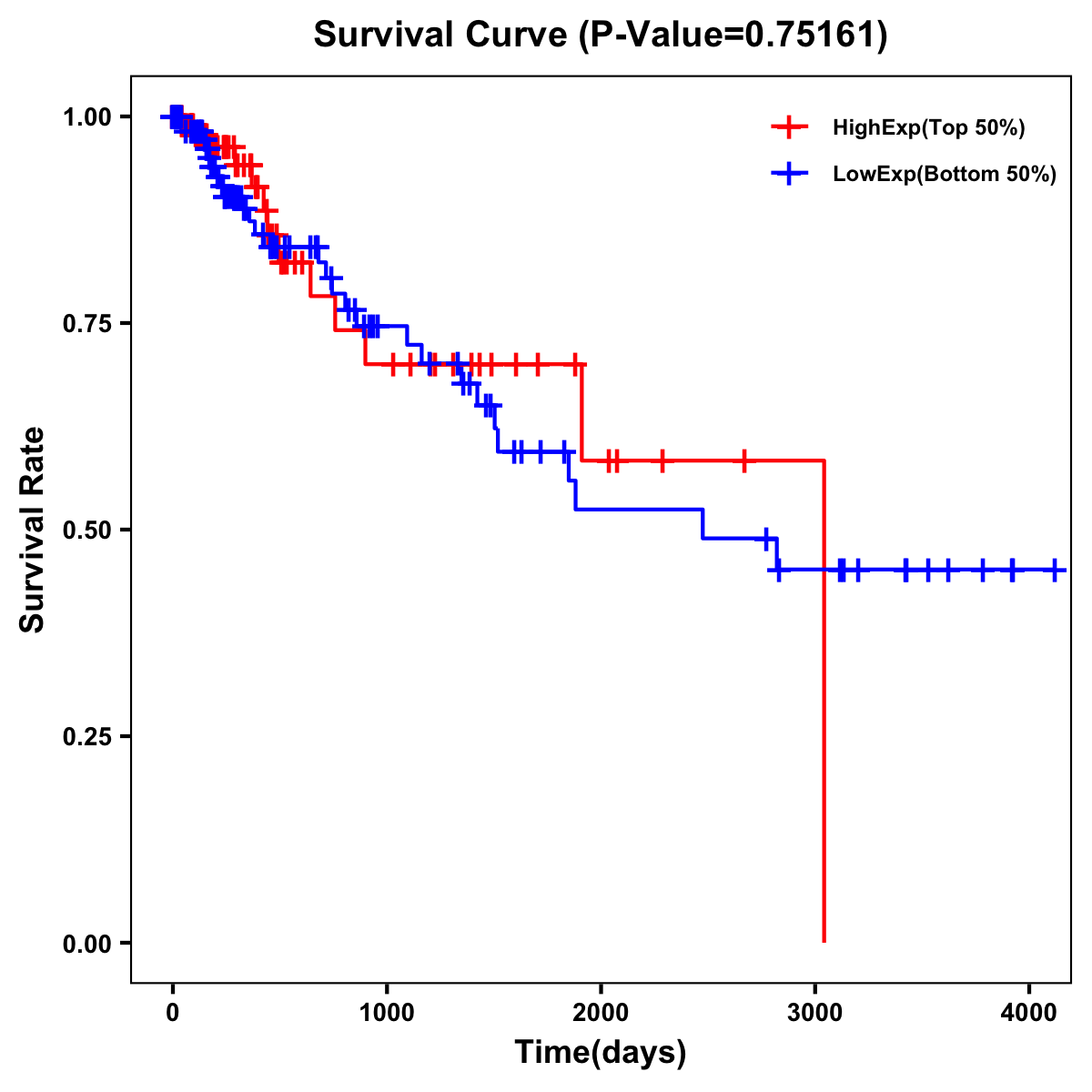 | Survival Curve of Colon Cancer on Expression Level |