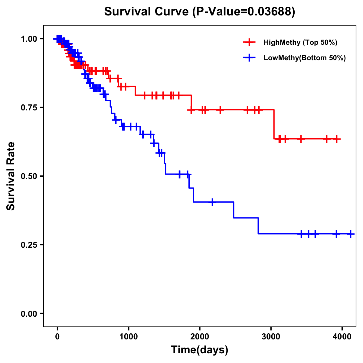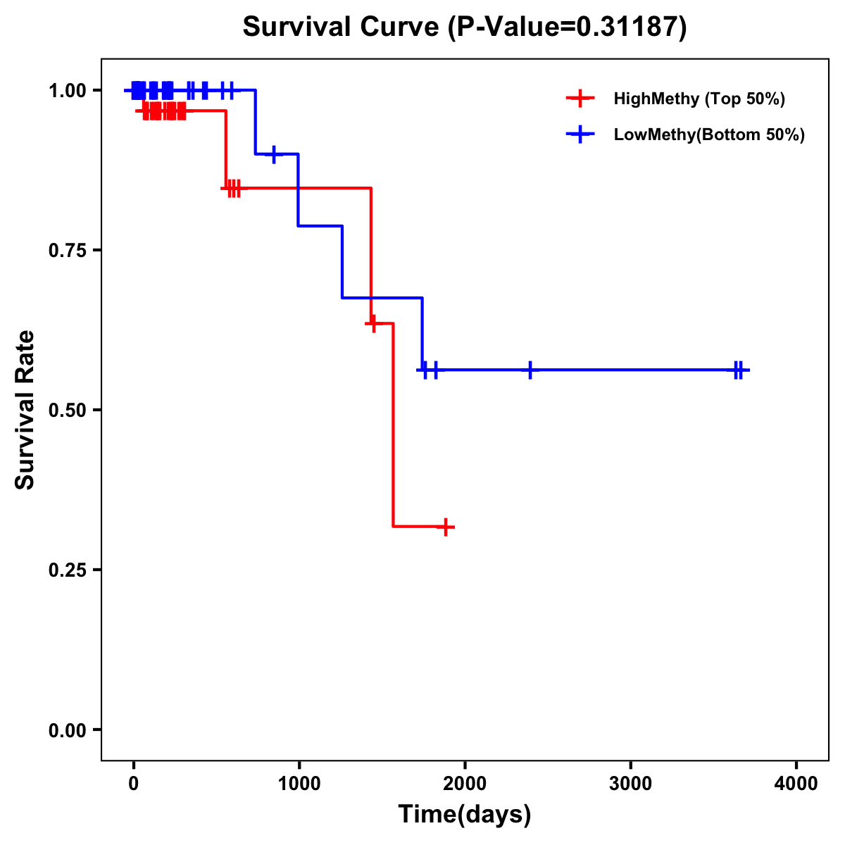 | Survival Curve of Colon Cancer on Methylation Level |