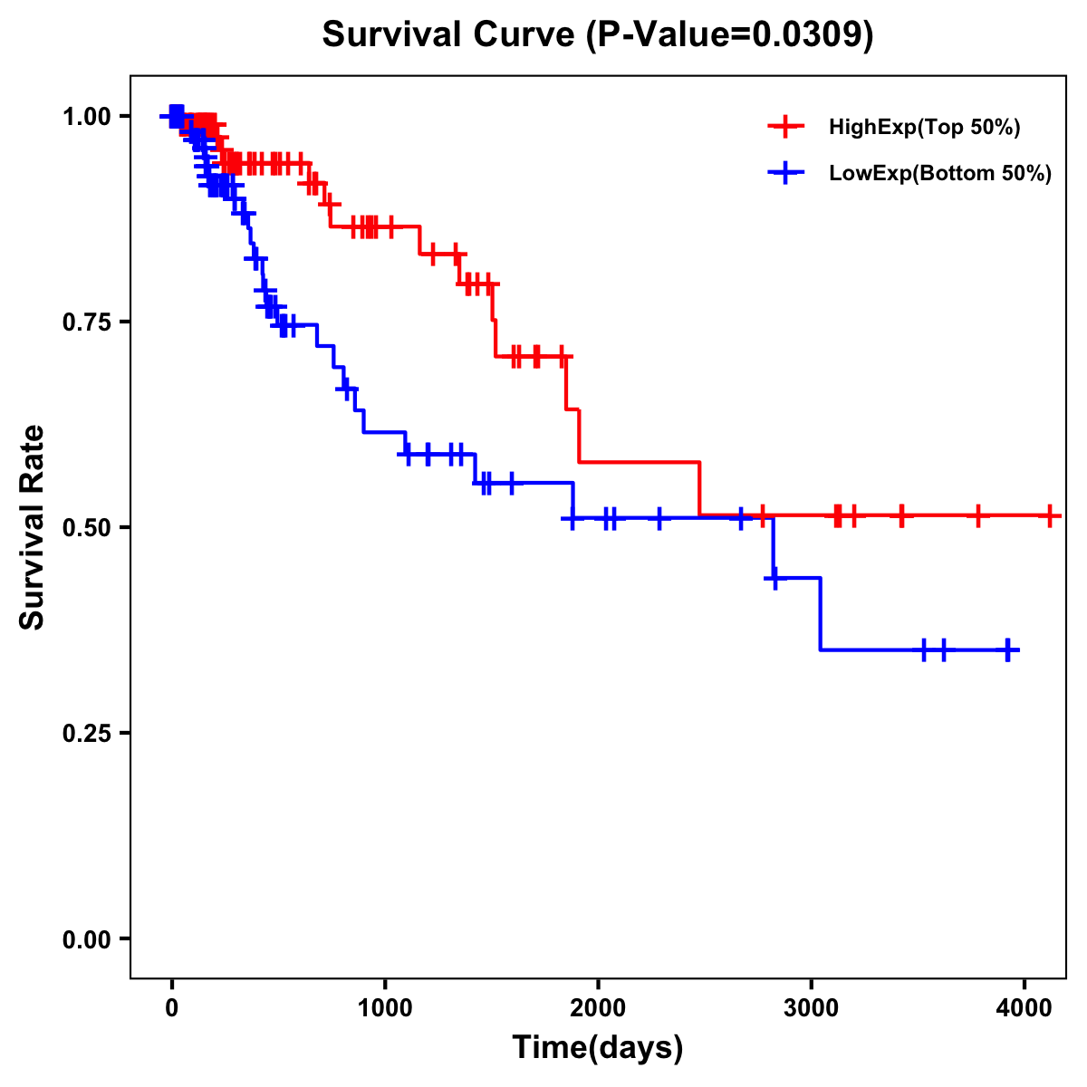 | Survival Curve of Colon Cancer on Expression Level |