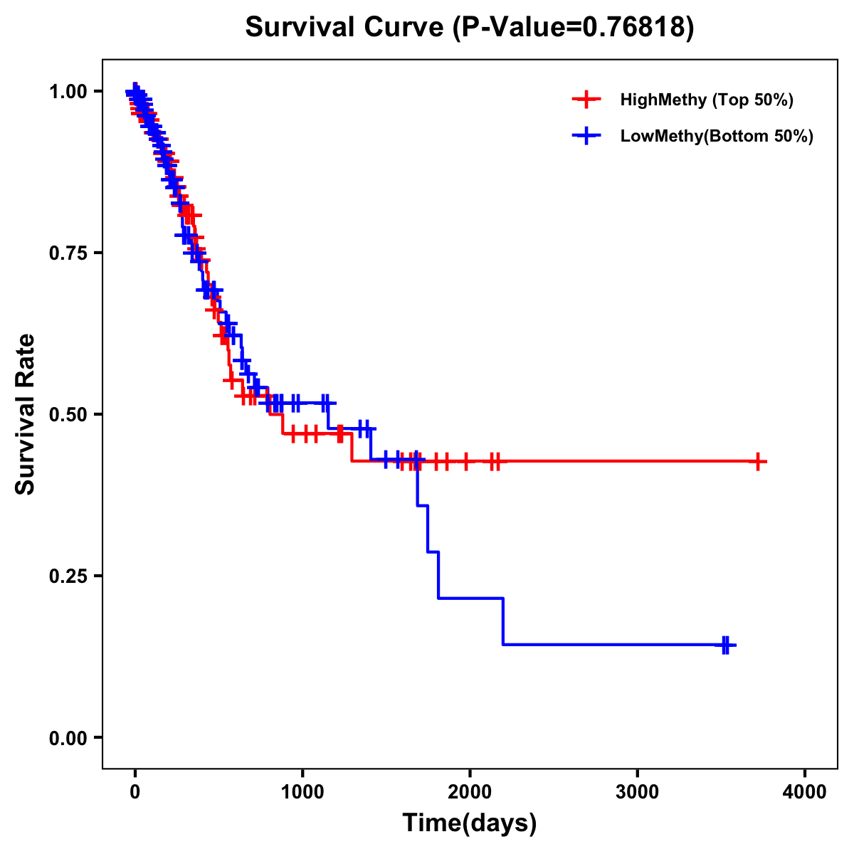 | Survival Curve of Stomach Cancer of Expression | Survival Curve of Stomach Cancer of Methylation | ||