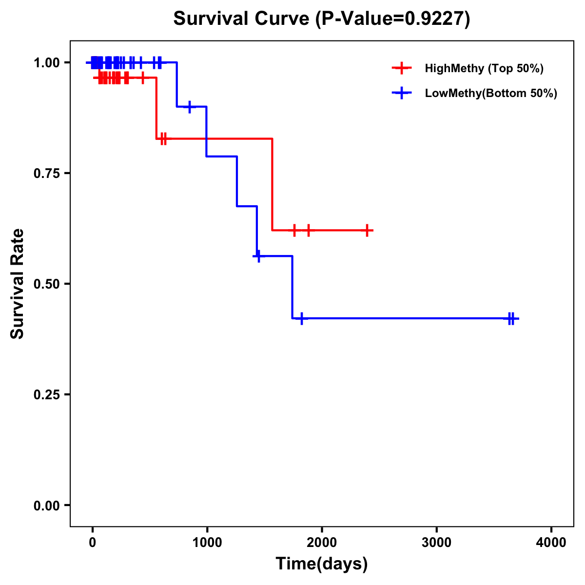 | Survival Curve of Colon Cancer on Methylation Level |