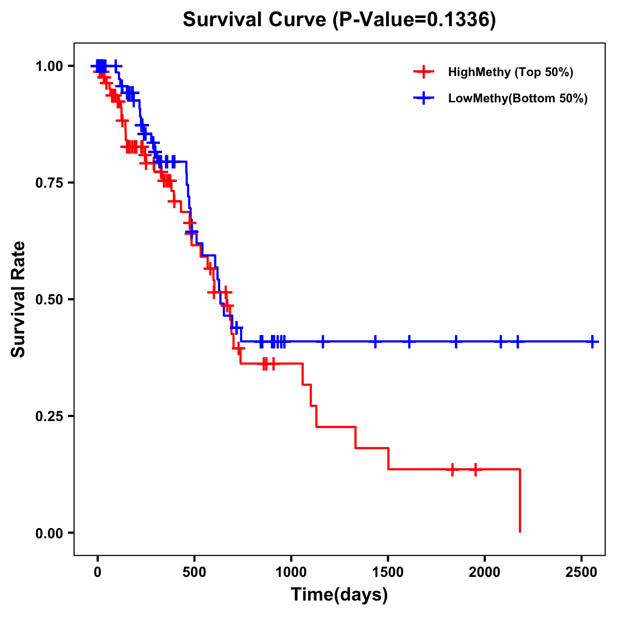 | Survival Curve of Pancreatic Cancer of Expression | Survival Curve of Pancreatic Cancer of Methylation | ||