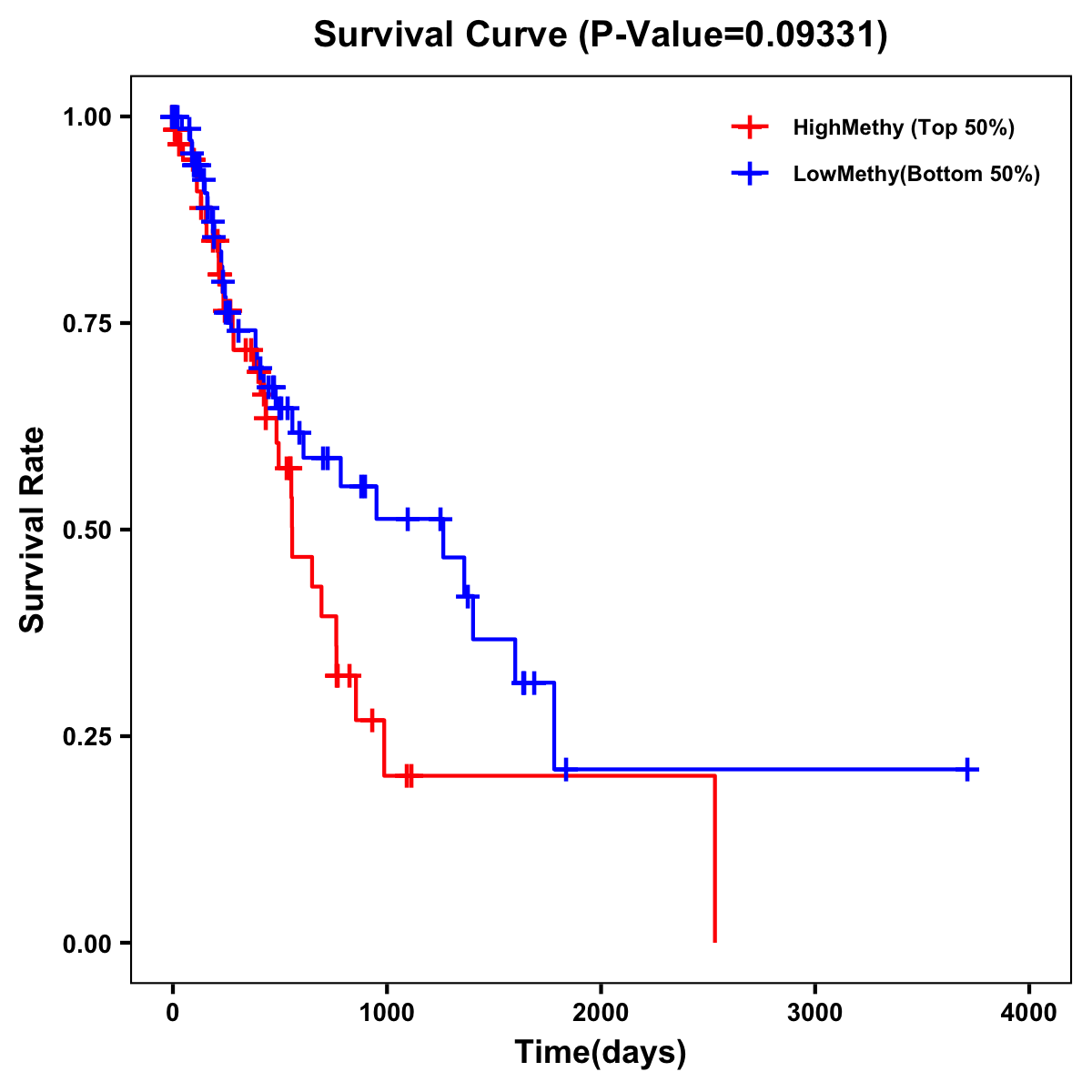 | Survival Curve of Esophagus Cancer of Expression | Survival Curve of Esophagus Cancer of Methylation | ||
