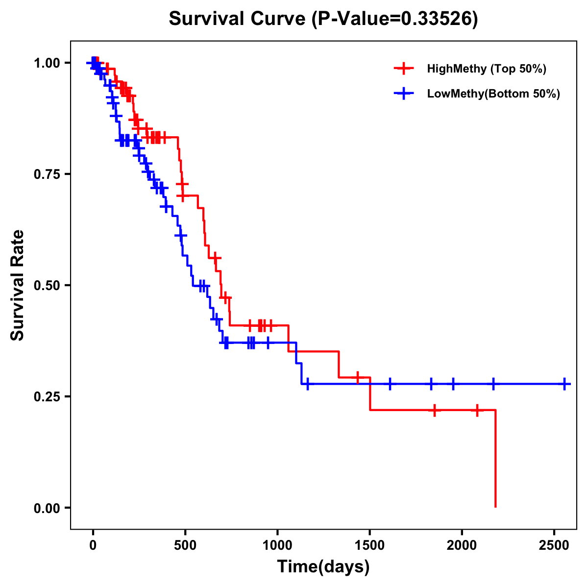 | Survival Curve of Pancreatic Cancer of Expression | Survival Curve of Pancreatic Cancer of Methylation | ||