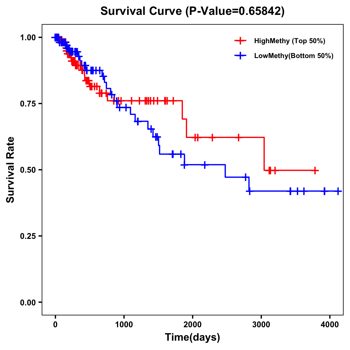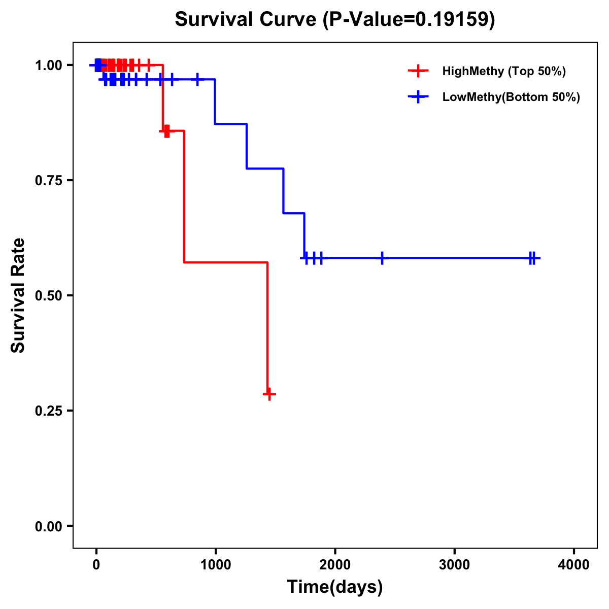 | Survival Curve of Colon Cancer on Methylation Level |