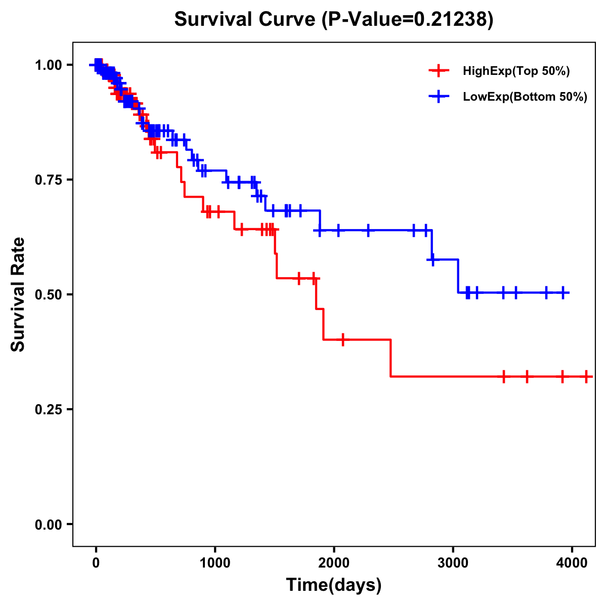 | Survival Curve of Colon Cancer on Expression Level |