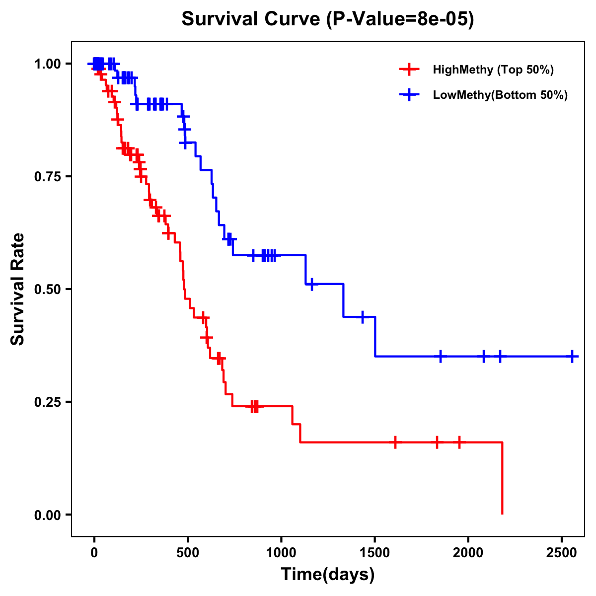 | Survival Curve of Pancreatic Cancer of Expression | Survival Curve of Pancreatic Cancer of Methylation | ||
