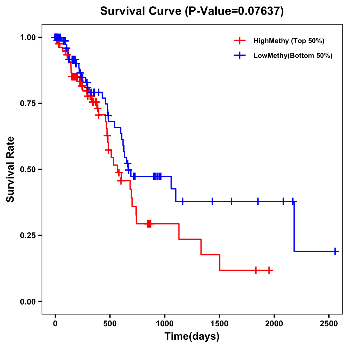 | Survival Curve of Pancreatic Cancer of Expression | Survival Curve of Pancreatic Cancer of Methylation | ||