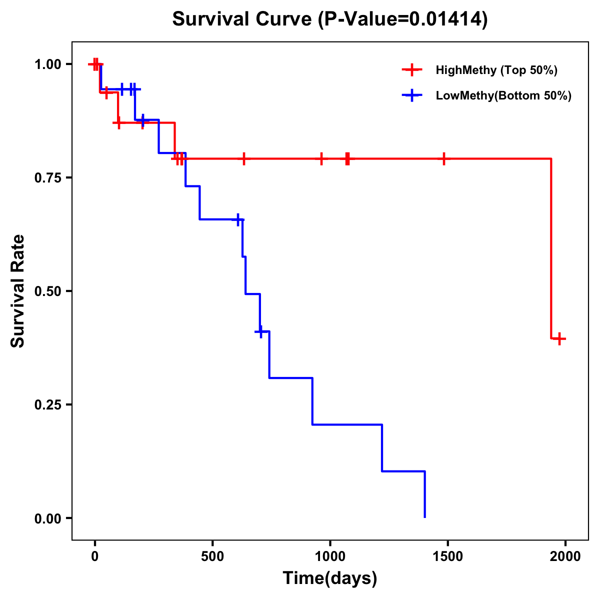 | Survival Curve of Biliary tract Cancer of Expression | Survival Curve of Biliary tract Cancer of Methylation | ||