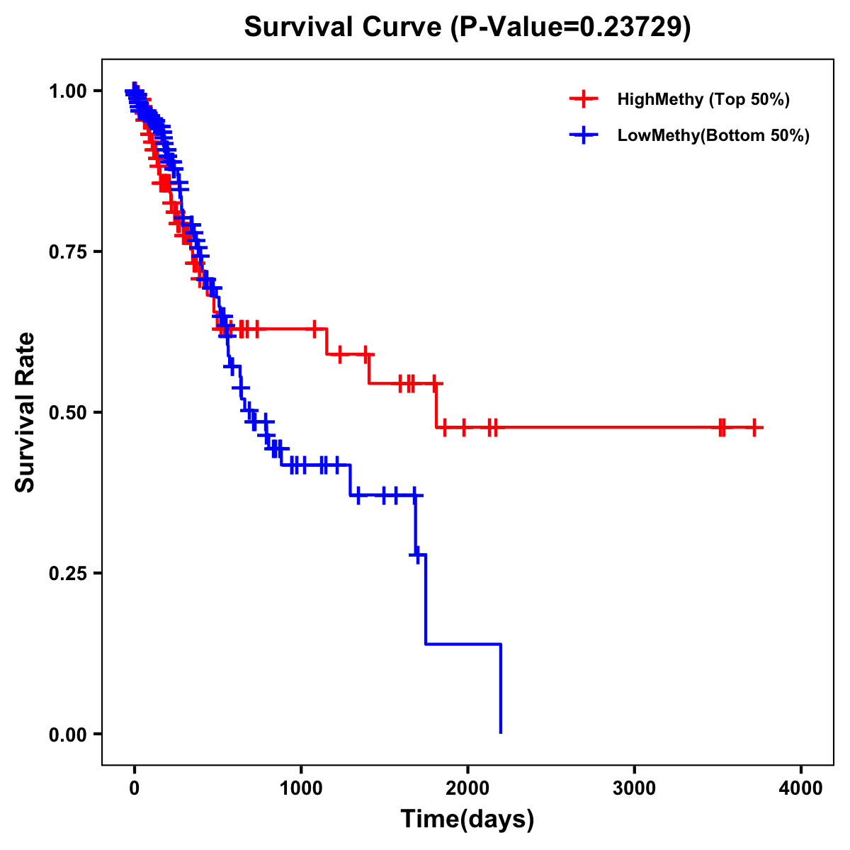 | Survival Curve of Stomach Cancer of Expression | Survival Curve of Stomach Cancer of Methylation | ||
