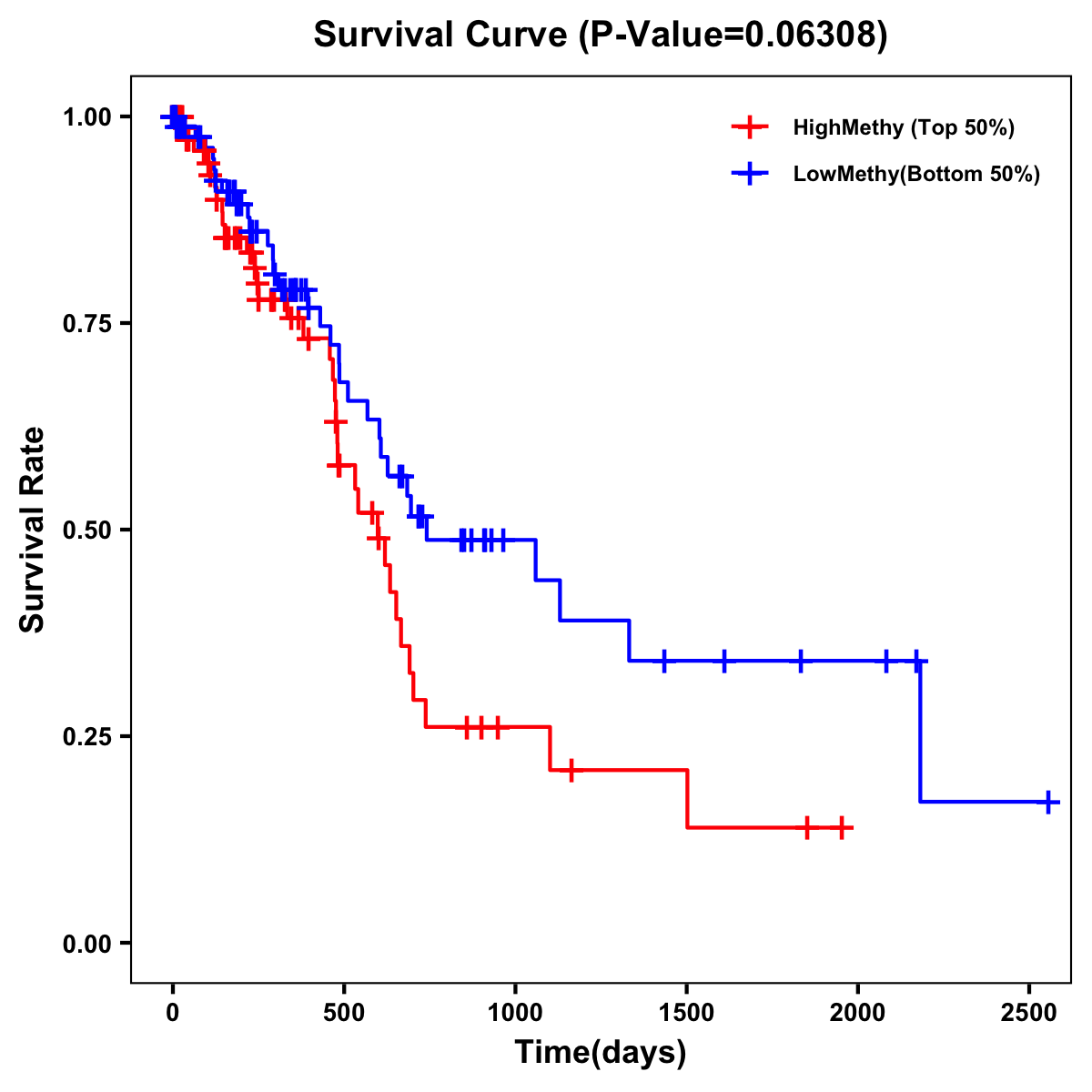 | Survival Curve of Pancreatic Cancer of Expression | Survival Curve of Pancreatic Cancer of Methylation | ||