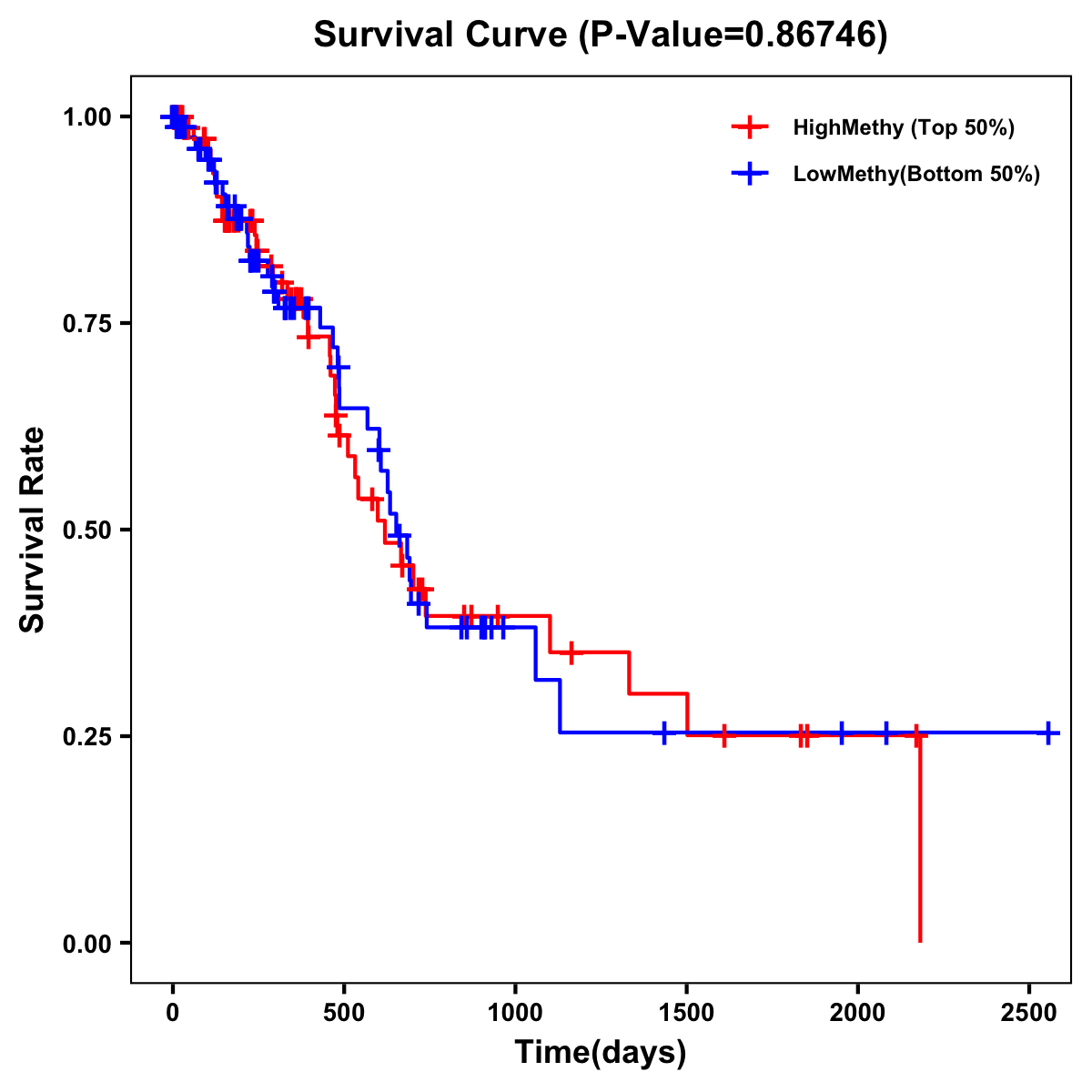 | Survival Curve of Pancreatic Cancer of Expression | Survival Curve of Pancreatic Cancer of Methylation | ||