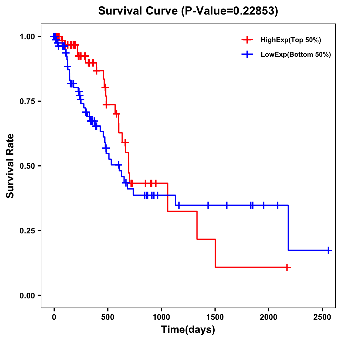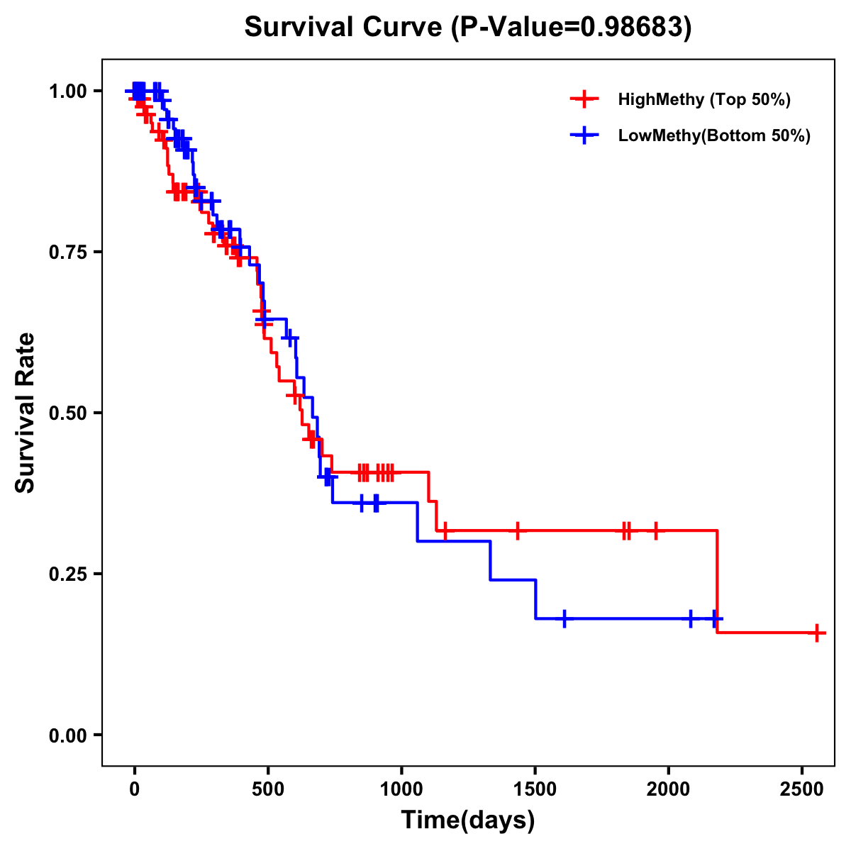 | Survival Curve of Pancreatic Cancer of Expression | Survival Curve of Pancreatic Cancer of Methylation | ||