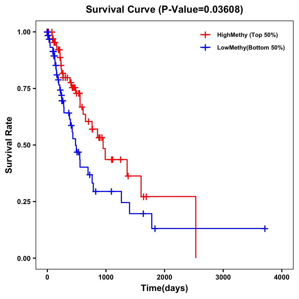 | Survival Curve of Esophagus Cancer of Expression | Survival Curve of Esophagus Cancer of Methylation | ||