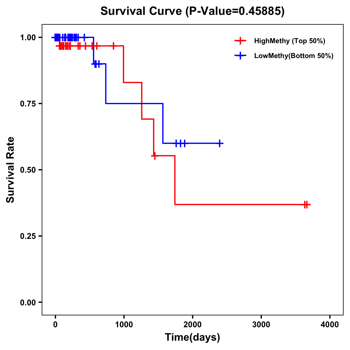 | Survival Curve of Colon Cancer on Methylation Level |