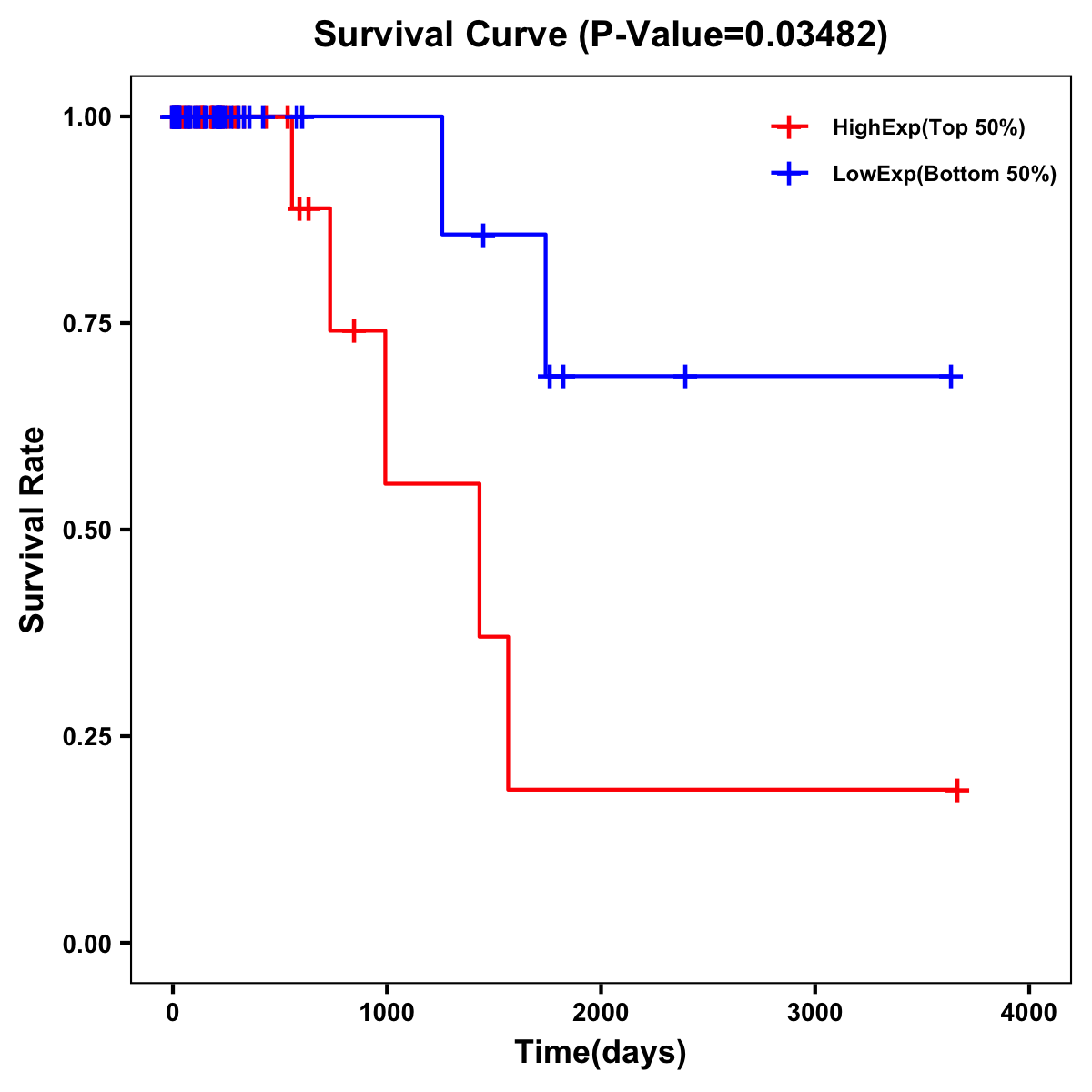 | Survival Curve of Colon Cancer on Expression Level |