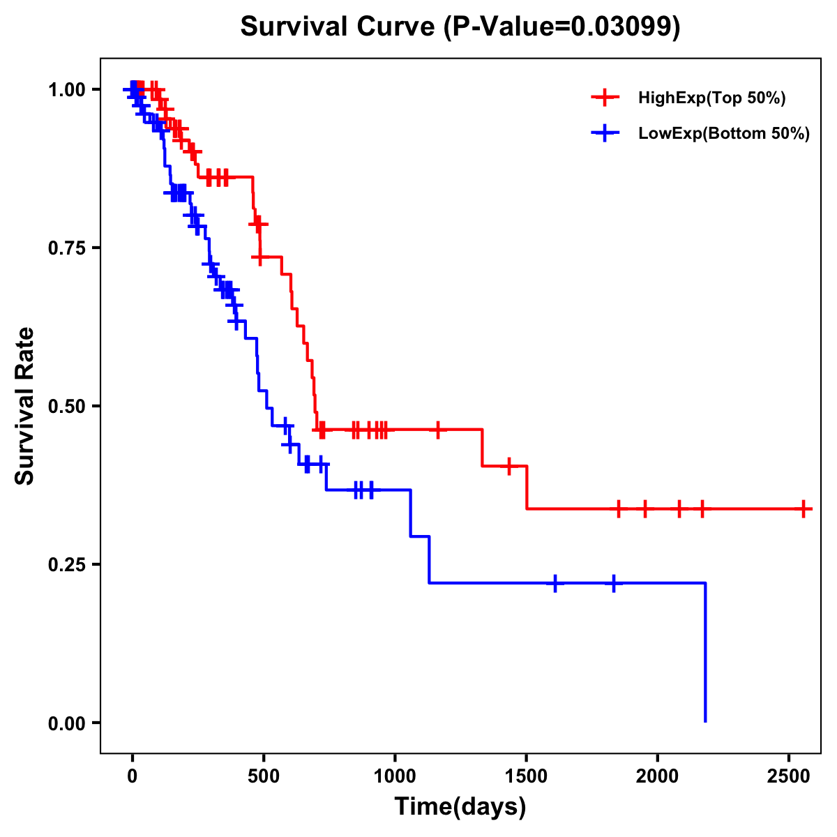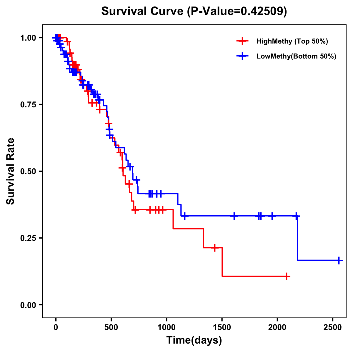 | Survival Curve of Pancreatic Cancer of Expression | Survival Curve of Pancreatic Cancer of Methylation | ||