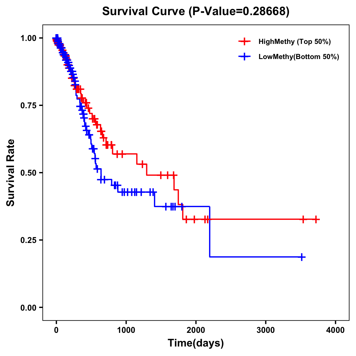 | Survival Curve of Stomach Cancer of Expression | Survival Curve of Stomach Cancer of Methylation | ||
