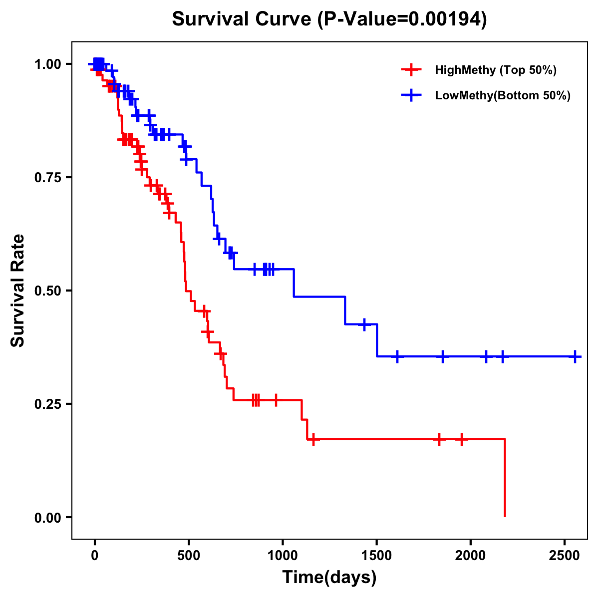 | Survival Curve of Pancreatic Cancer of Expression | Survival Curve of Pancreatic Cancer of Methylation | ||