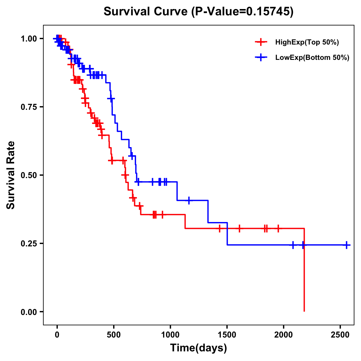 | Survival Curve of Pancreatic Cancer of Expression | Survival Curve of Pancreatic Cancer of Methylation | ||
