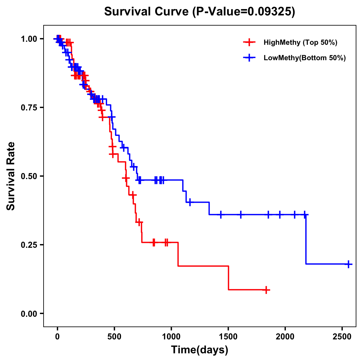 | Survival Curve of Pancreatic Cancer of Expression | Survival Curve of Pancreatic Cancer of Methylation | ||