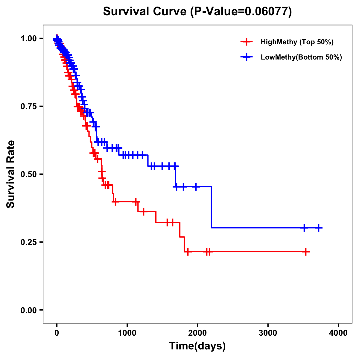 | Survival Curve of Stomach Cancer of Expression | Survival Curve of Stomach Cancer of Methylation | ||