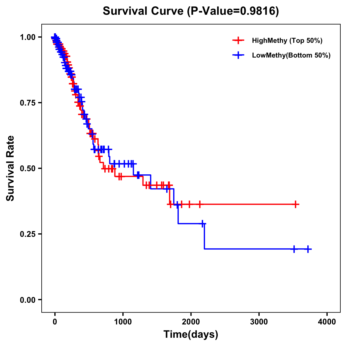 | Survival Curve of Stomach Cancer of Expression | Survival Curve of Stomach Cancer of Methylation | ||
