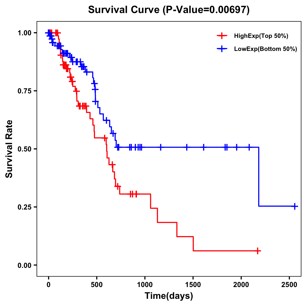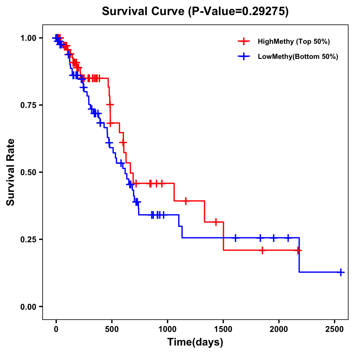 | Survival Curve of Pancreatic Cancer of Expression | Survival Curve of Pancreatic Cancer of Methylation | ||