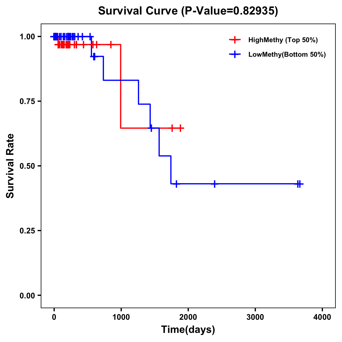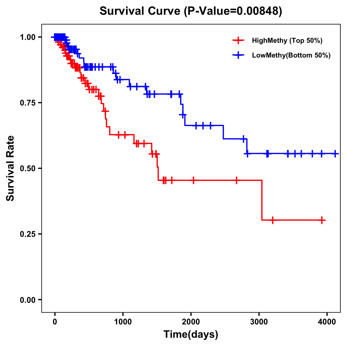 | Survival Curve of Colon Cancer on Methylation Level |