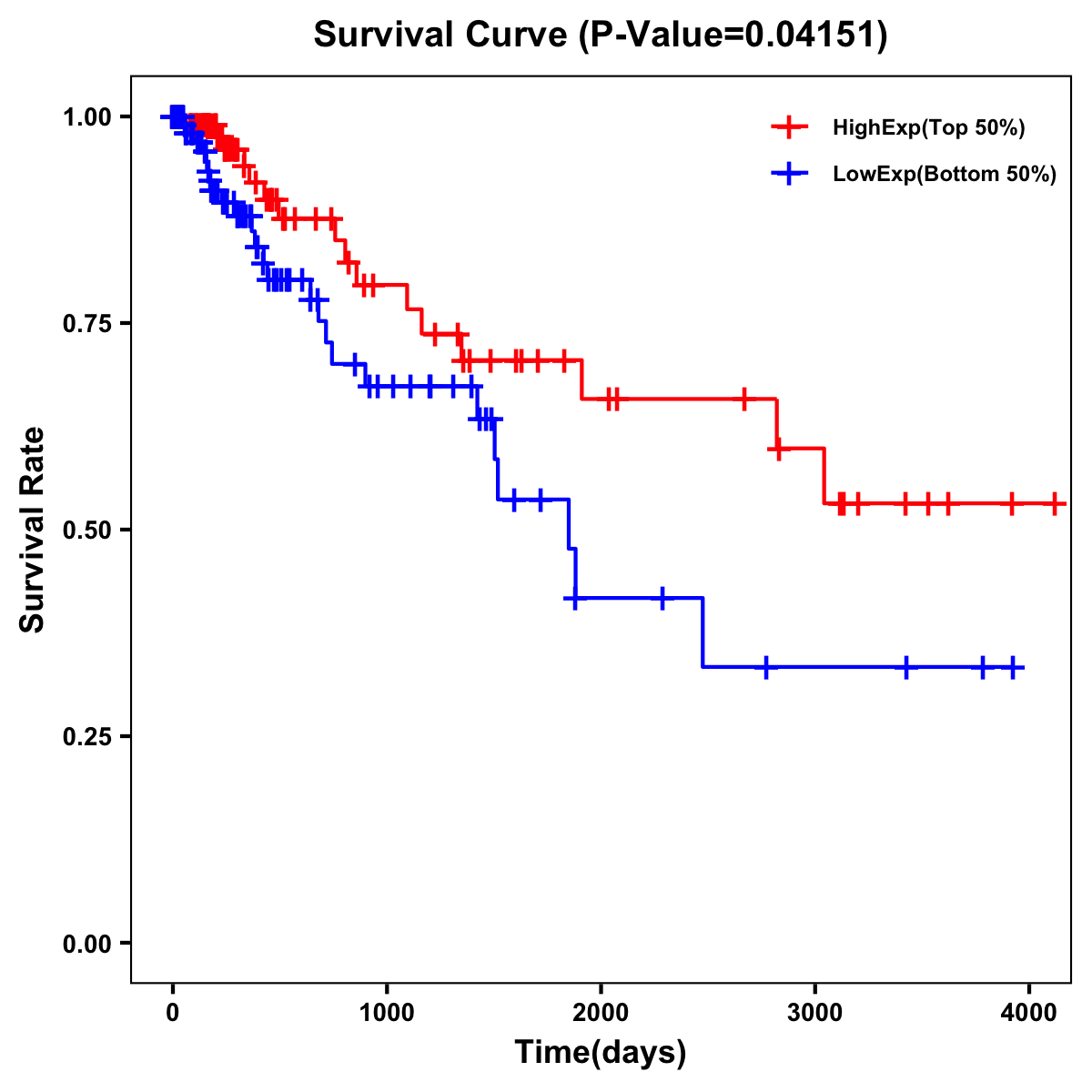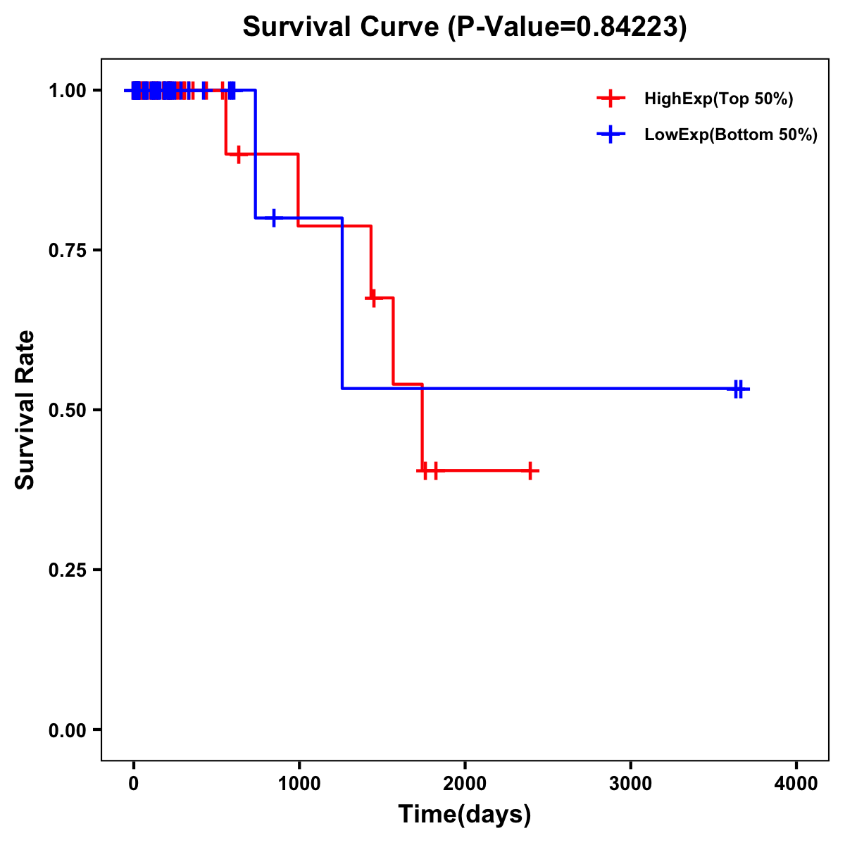 | Survival Curve of Colon Cancer on Expression Level |