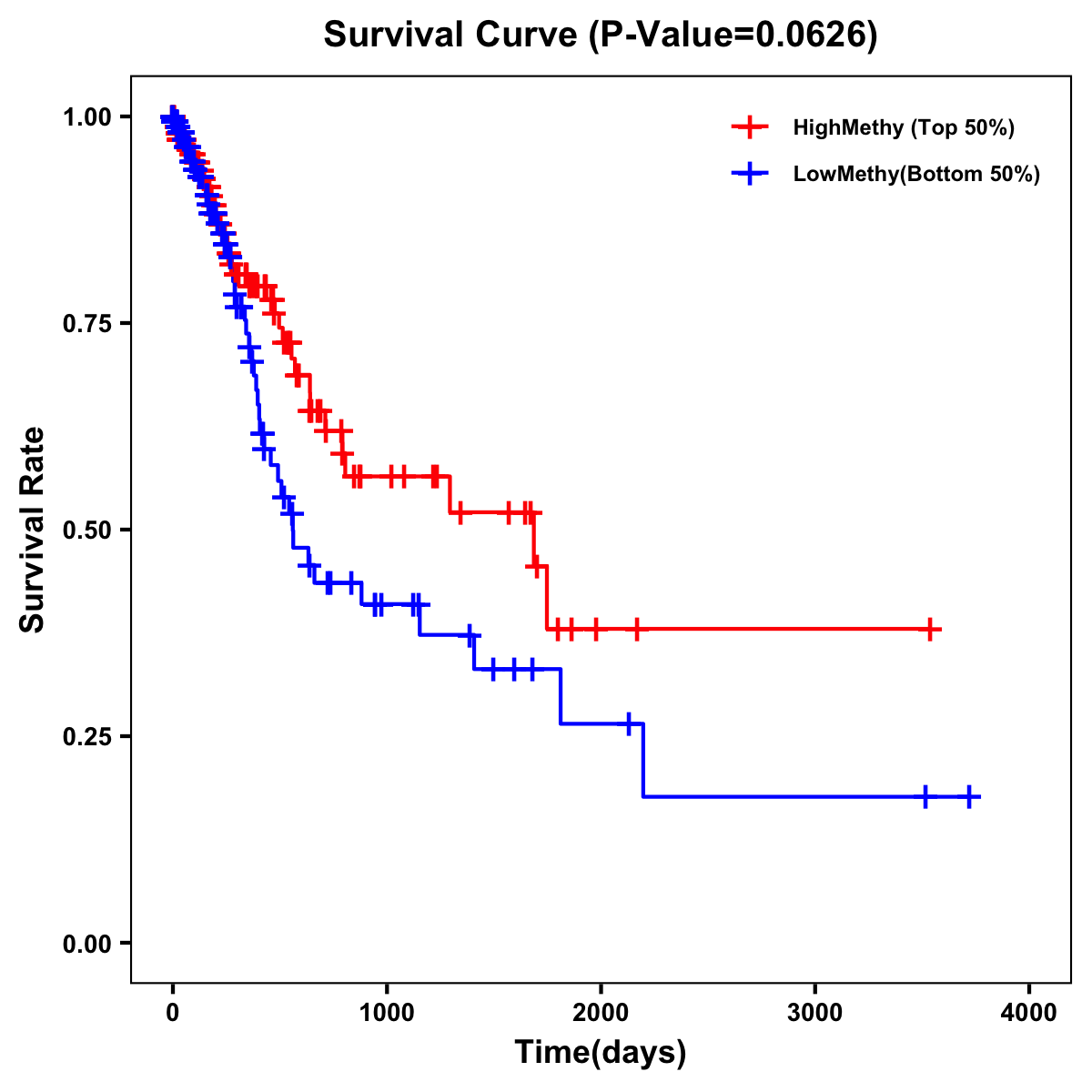 | Survival Curve of Stomach Cancer of Expression | Survival Curve of Stomach Cancer of Methylation | ||