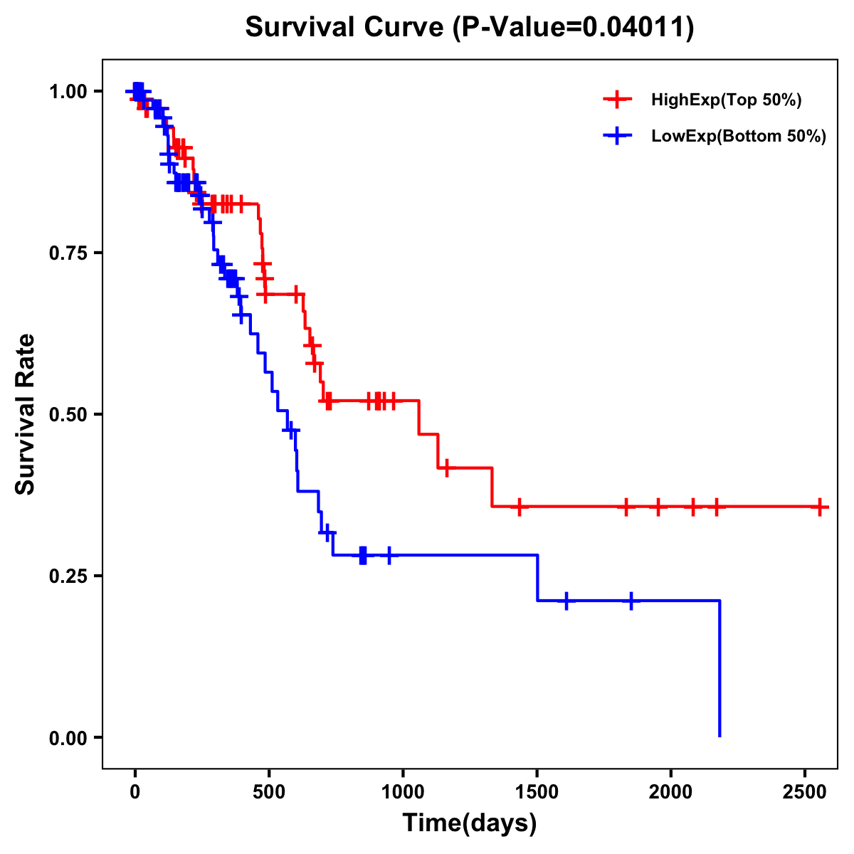 | Survival Curve of Pancreatic Cancer of Expression | Survival Curve of Pancreatic Cancer of Methylation | ||