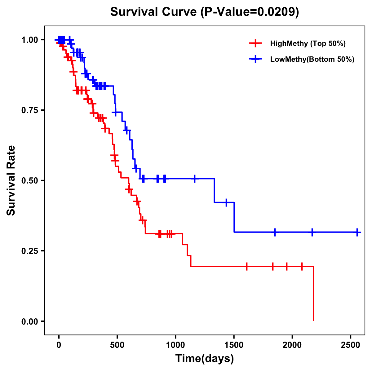 | Survival Curve of Pancreatic Cancer of Expression | Survival Curve of Pancreatic Cancer of Methylation | ||