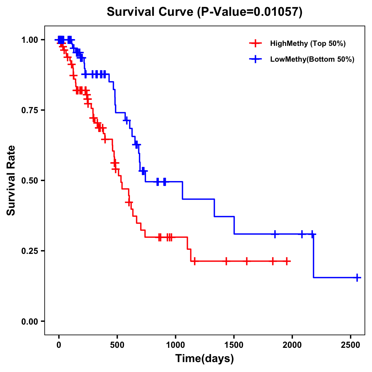 | Survival Curve of Pancreatic Cancer of Expression | Survival Curve of Pancreatic Cancer of Methylation | ||