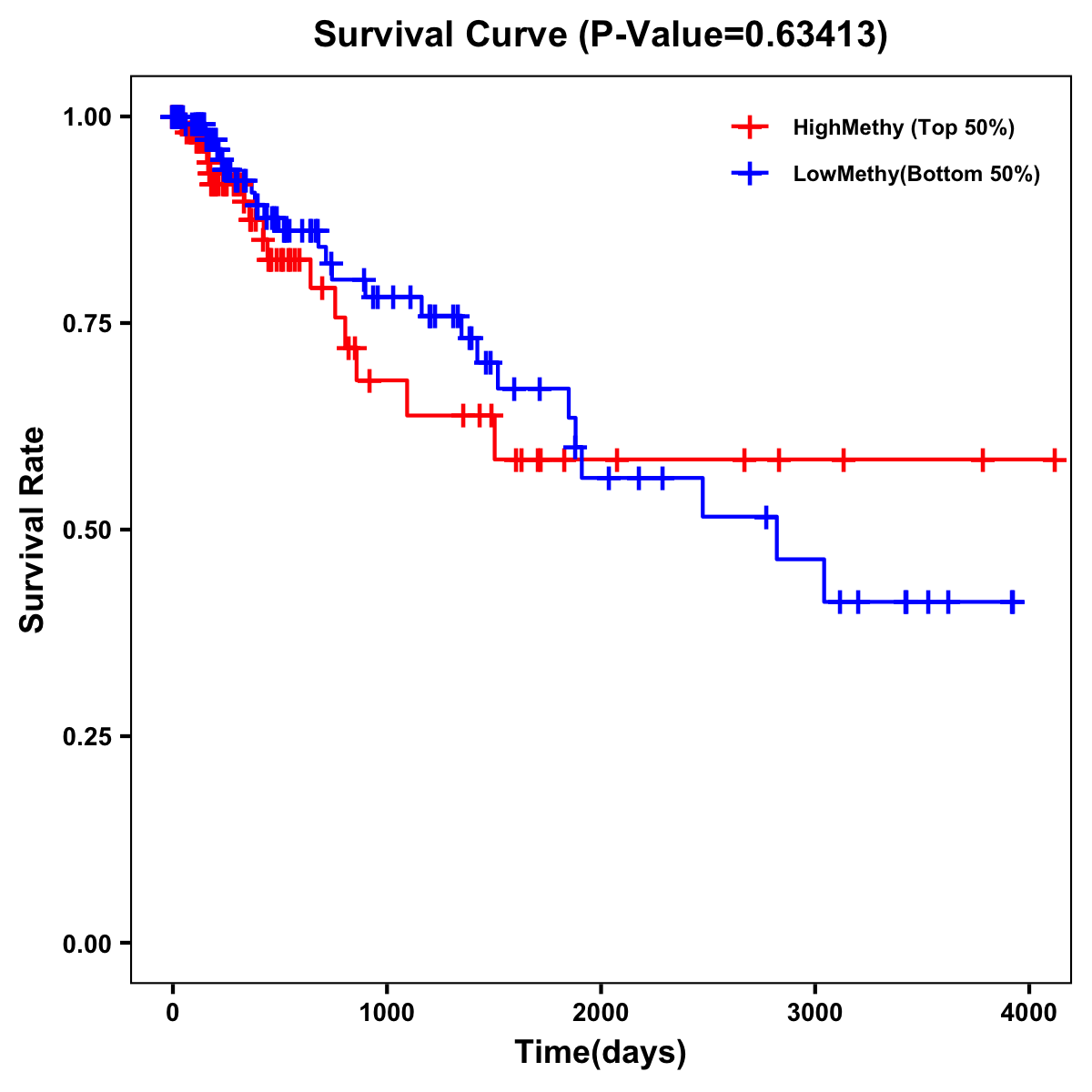 | Survival Curve of Colon Cancer on Methylation Level |
